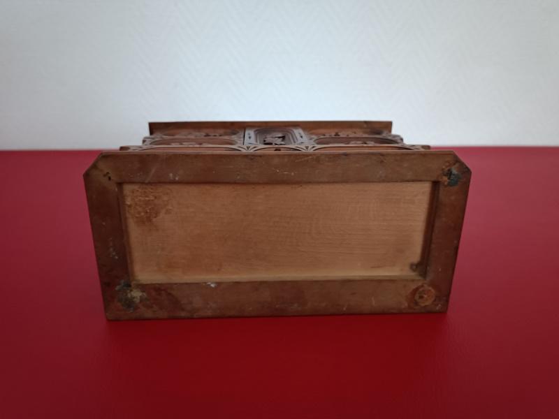 En bon état, traces de restauration ancienne sous le couvercle, absence de clé. Dimensions L22 x P11 x H21cm-Poids 910g.