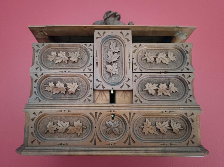 Boite à bijoux en bois sculpté dans le goût Forêt Noire