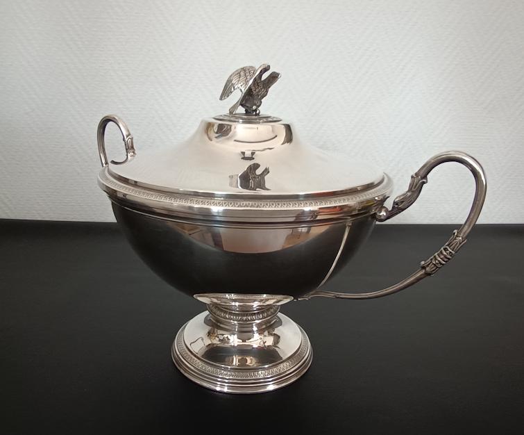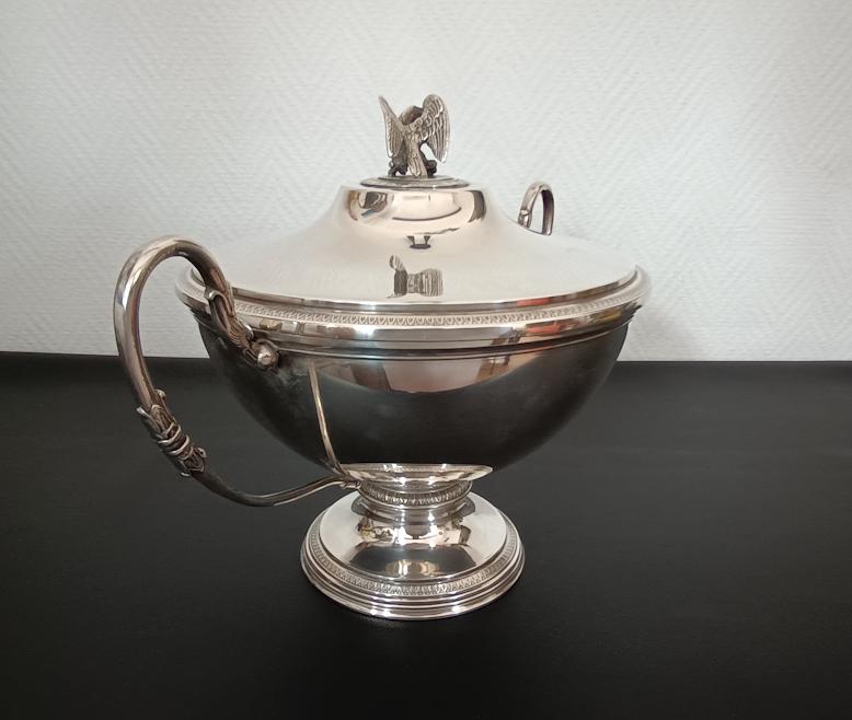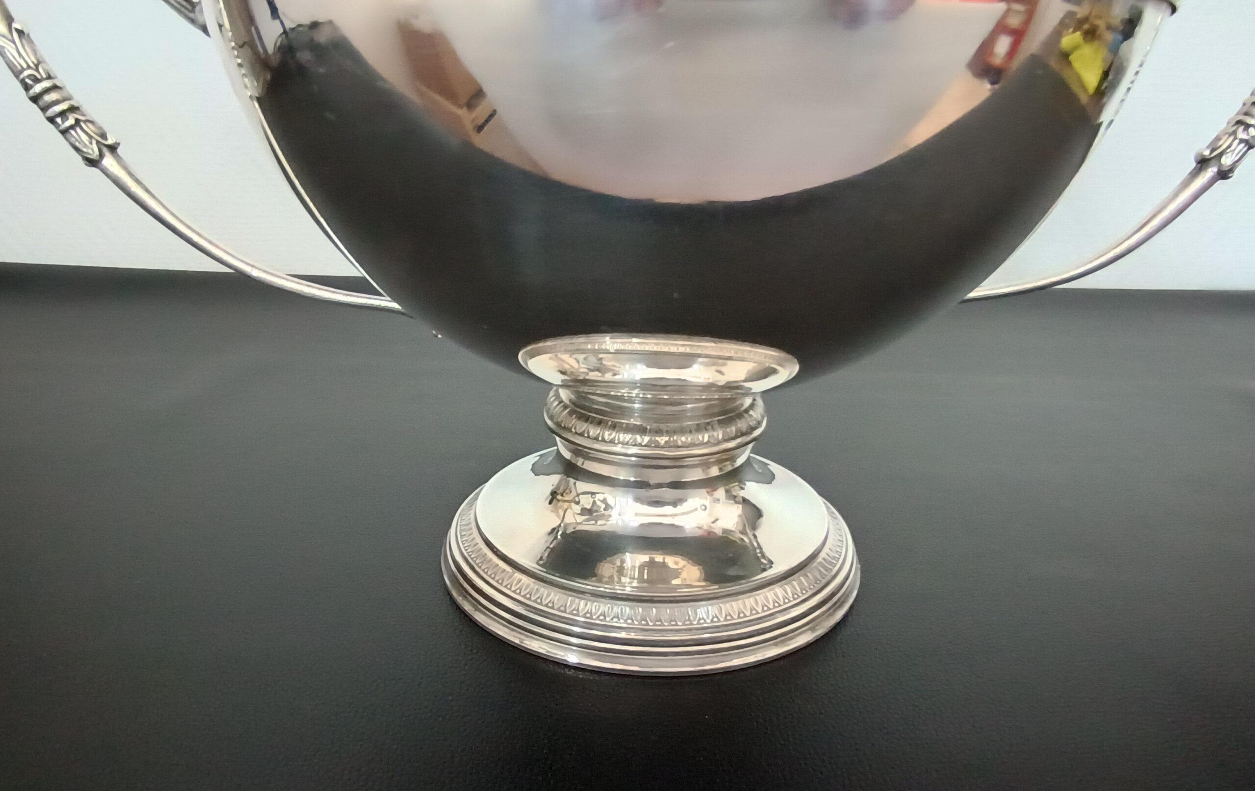 Poinçon d’orfèvrerie SPA. En bon état, légères rayures d’usage, intérieur avec rayures. Dimensions L40 x H30 x Ø26cm-Poids 1kg800.