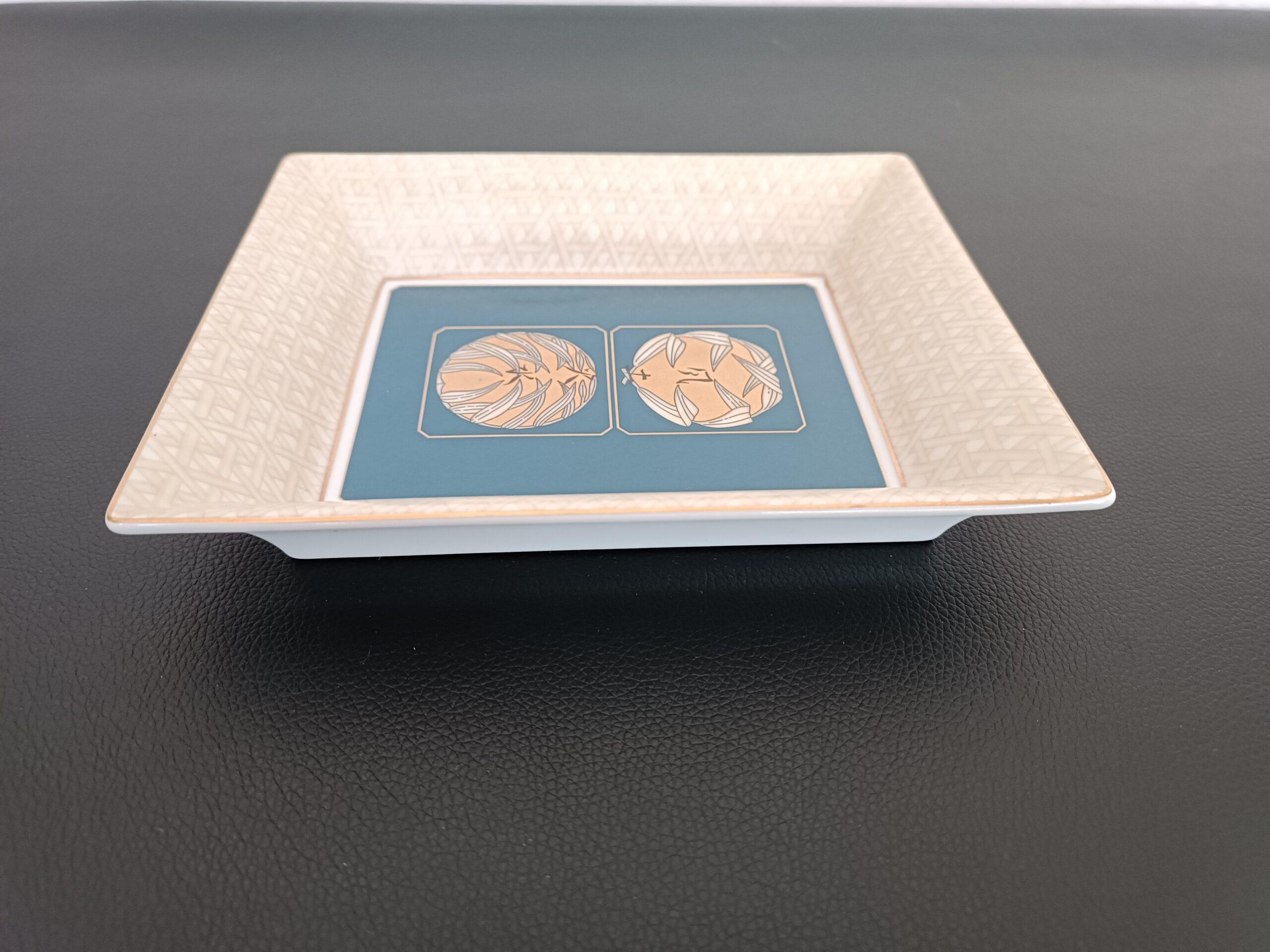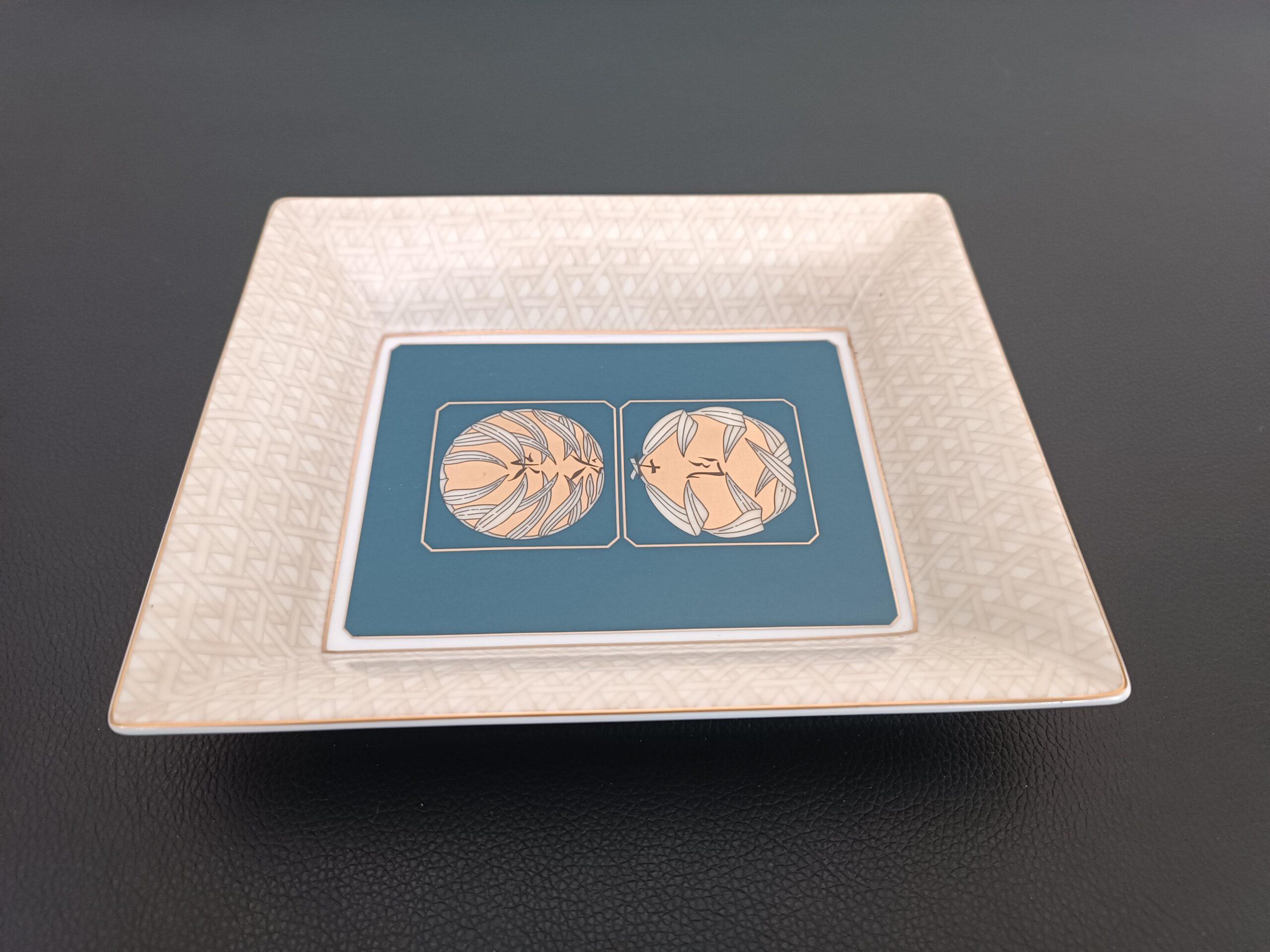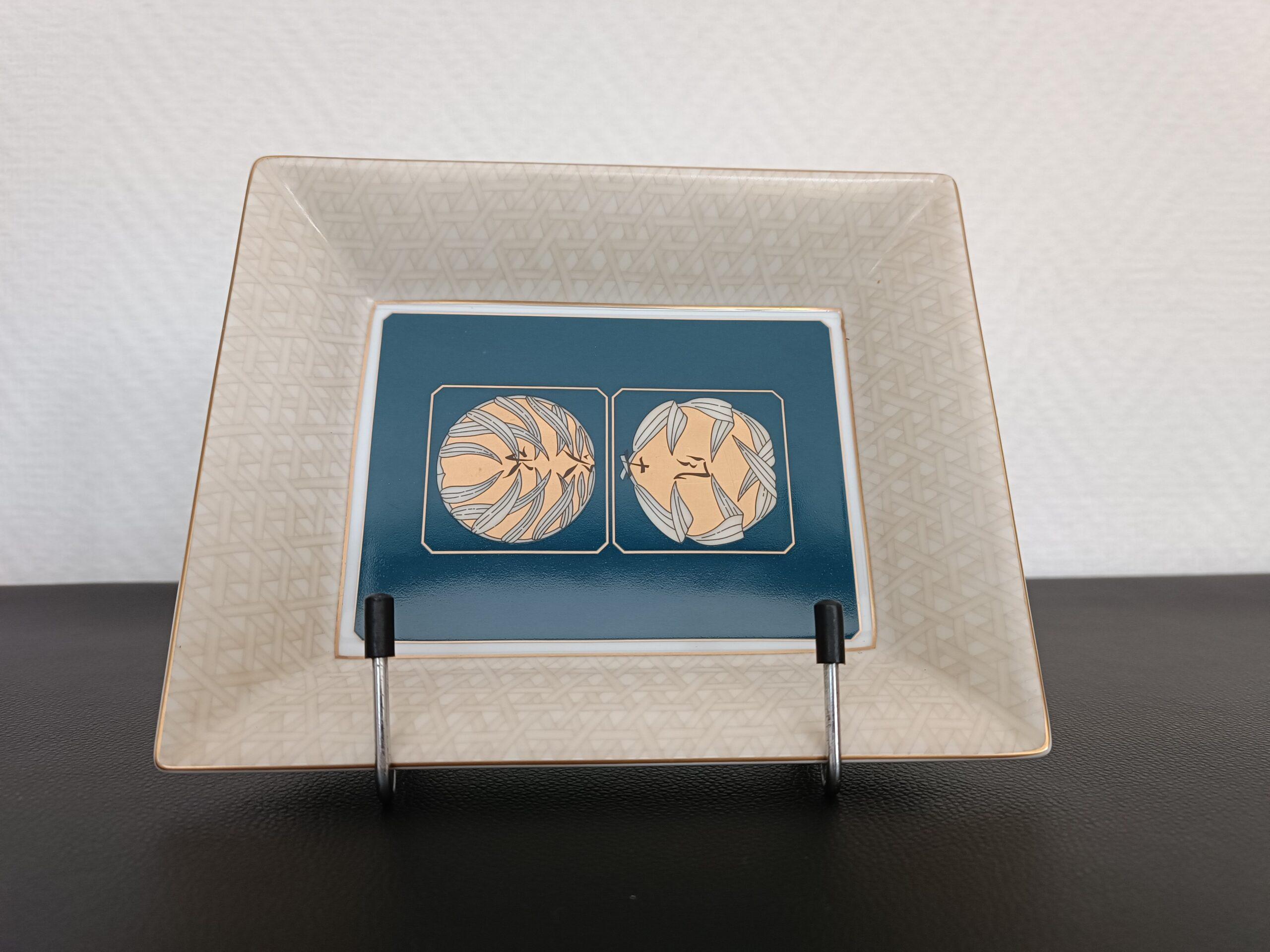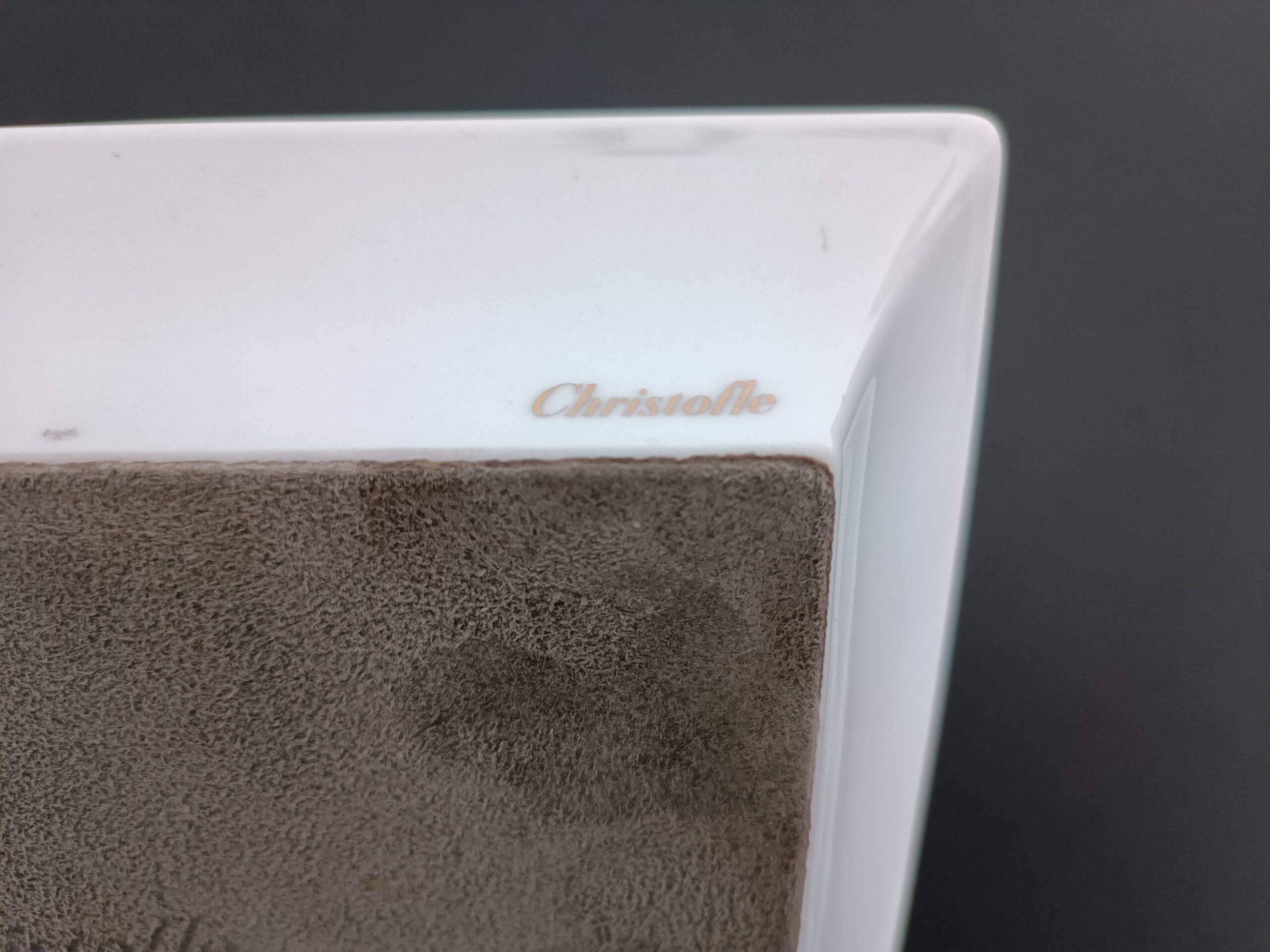 Vide-poches en porcelaine signé Christofle modèle Palanquin bleu.