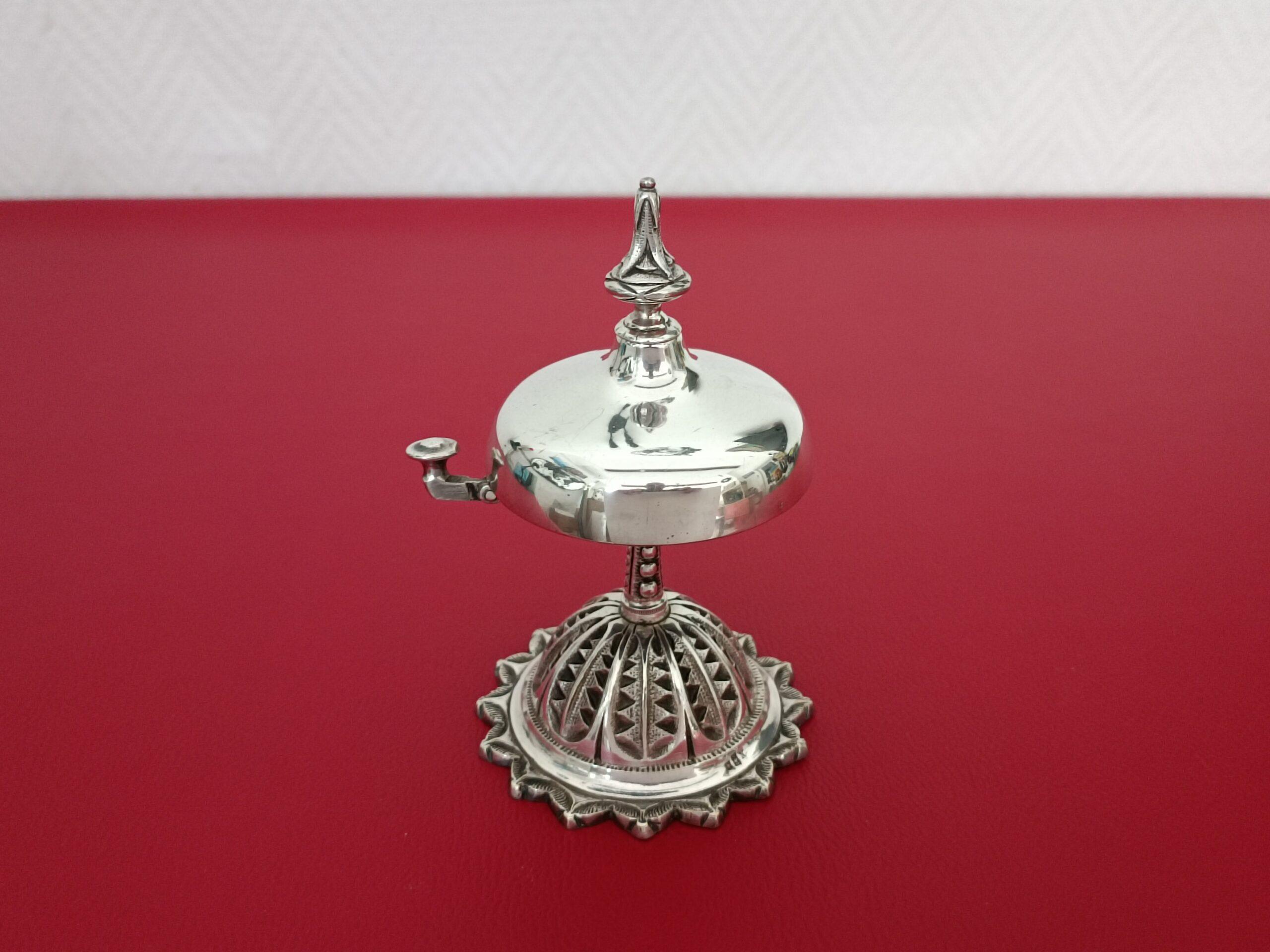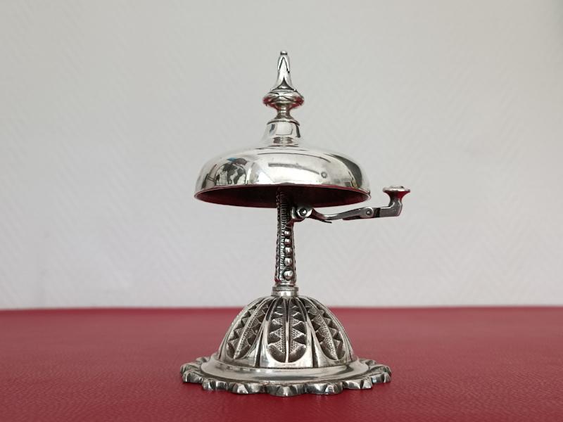 Clochette de comptoir en métal argenté signée Armand Frenais