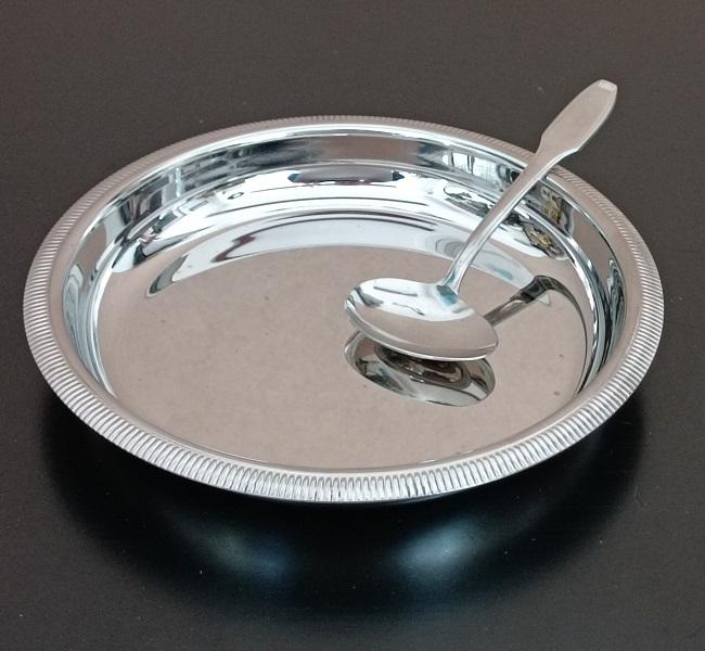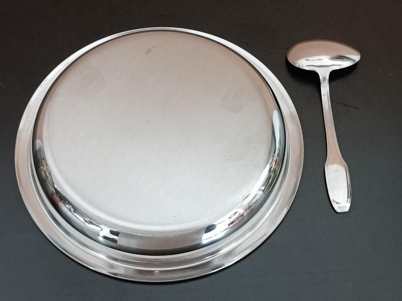 En bon état, très légères traces d’usage. Diamètre de l’assiette 18cm longueur cuillère 12,5cm.