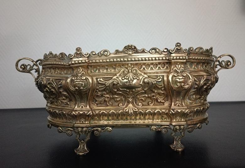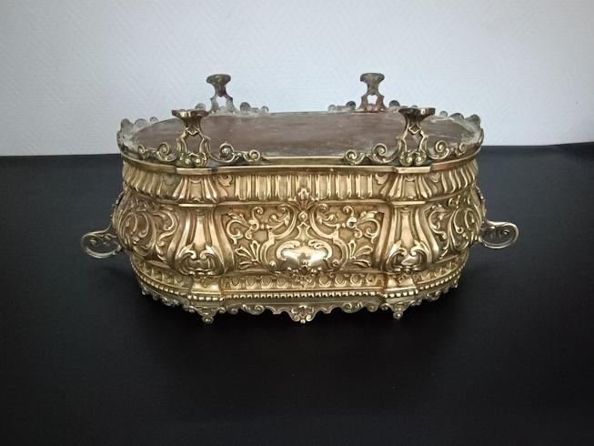Jardinière en laiton repoussé vers 1900