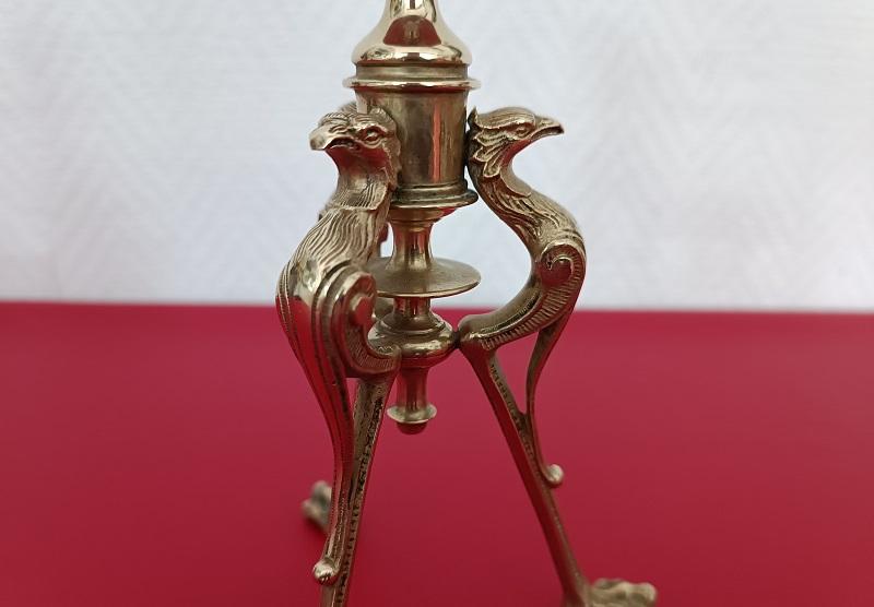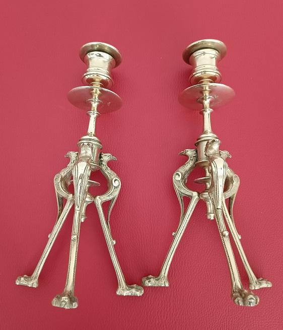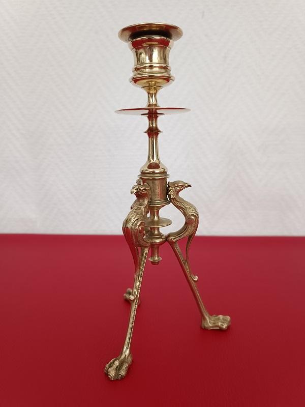 En bon état, à noter 3 retours de queue arrondis fissurés ne gênant en rien la bonne stabilité des bougeoirs. Hauteur 24cm x 12cm(base)-Poids total 1kg240.
