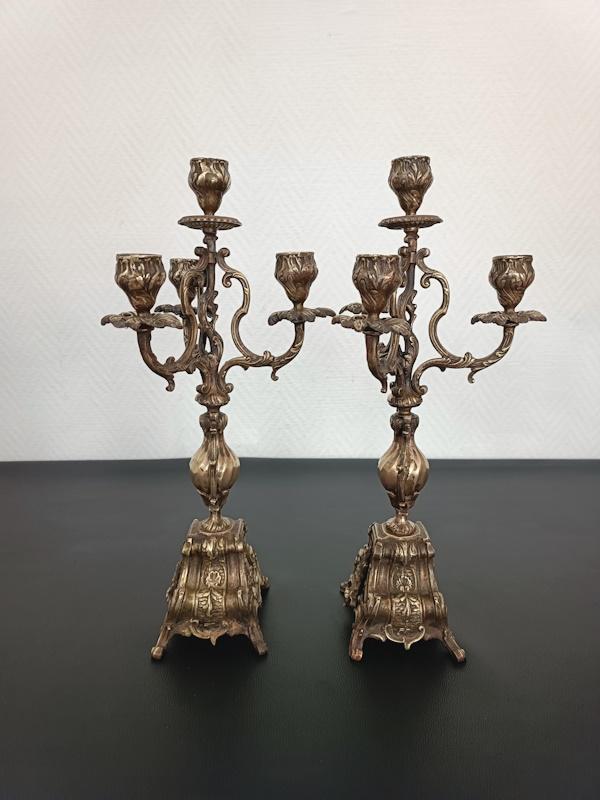 Paire de chandeliers de style Louis XV en bronze
