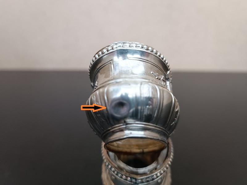 En bon état, rayures d’usage et un petit sous un saleron(photo). Dimensions: L6,5 x P4x H4cm poids 150g.