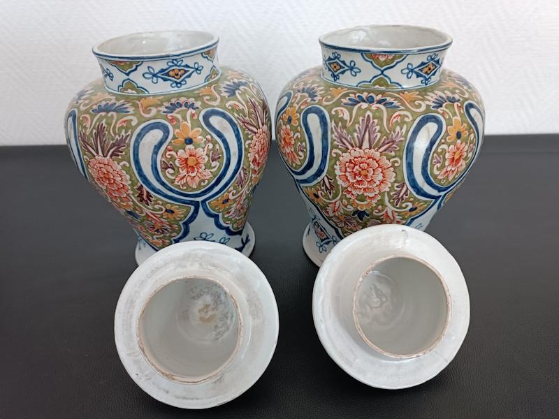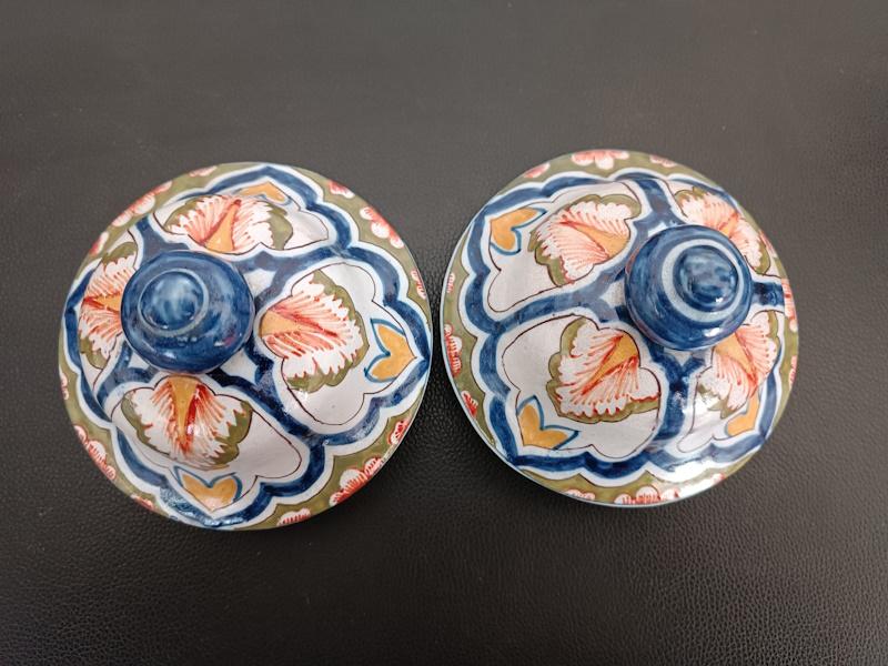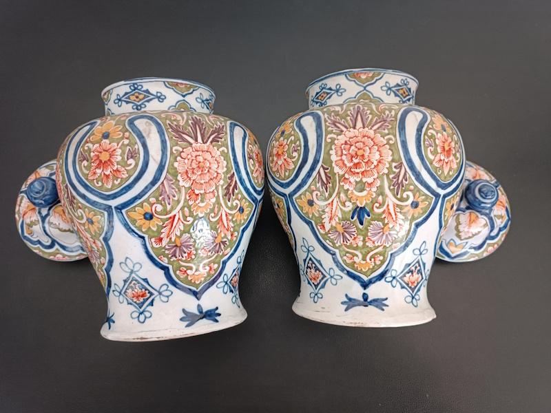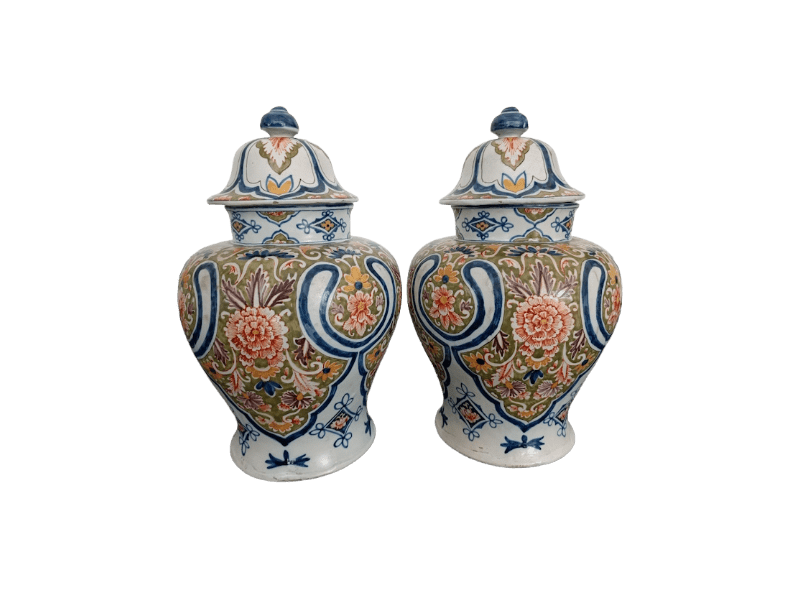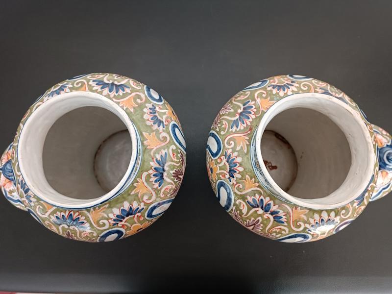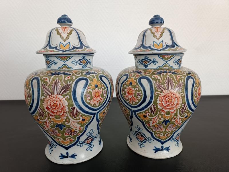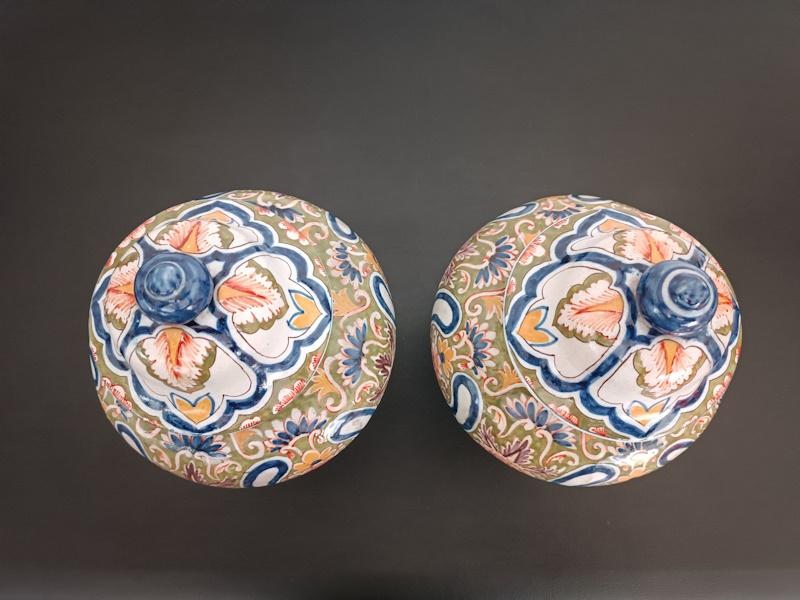 Paire de vases couverts en faïence polychrome