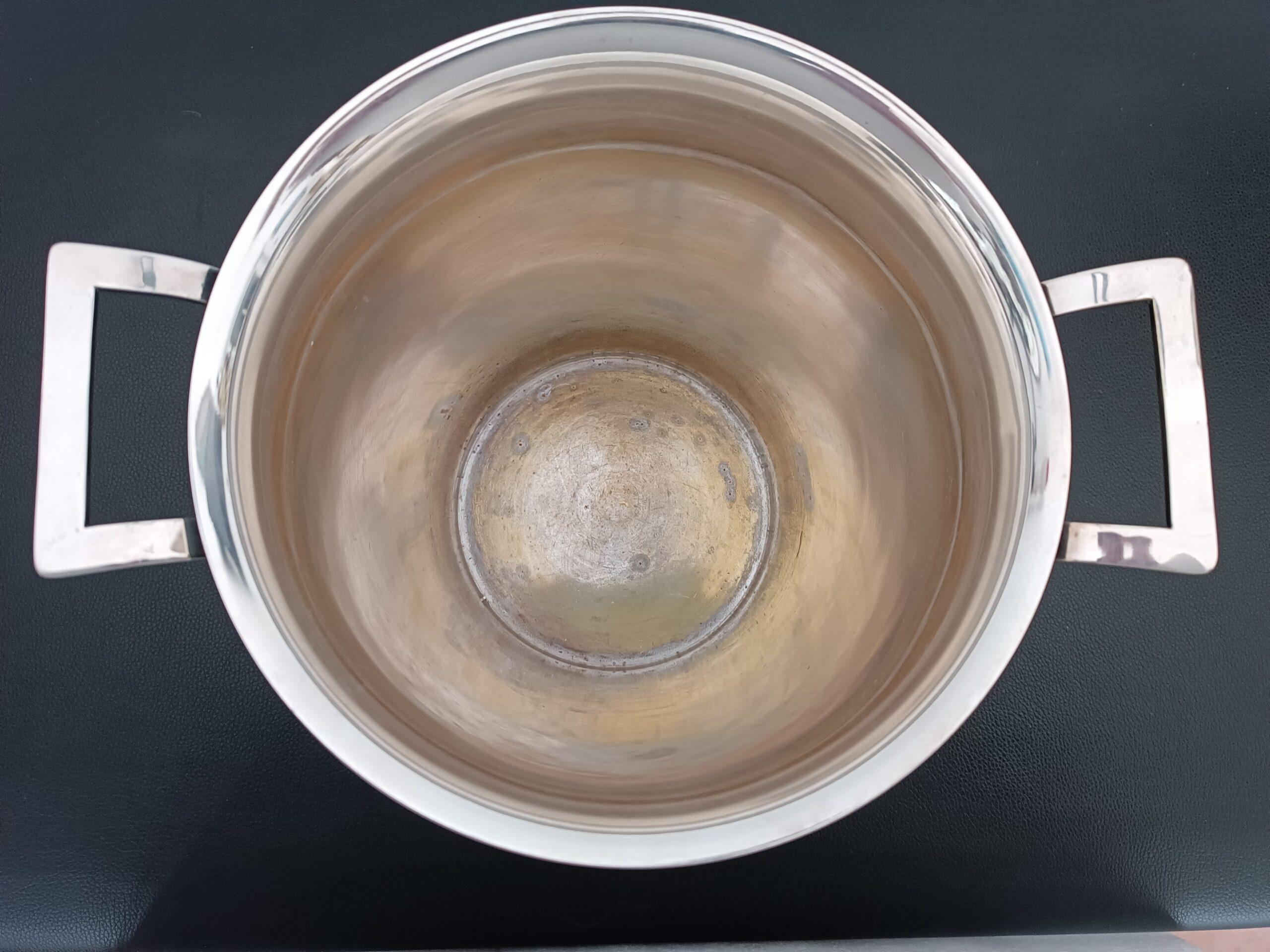 En bon état, des rayures d’usage intérieur propre. Dimensions: H 20 x Ø 14,5cm (base) largeur avec anses 28cm-Poids 1kg160.
