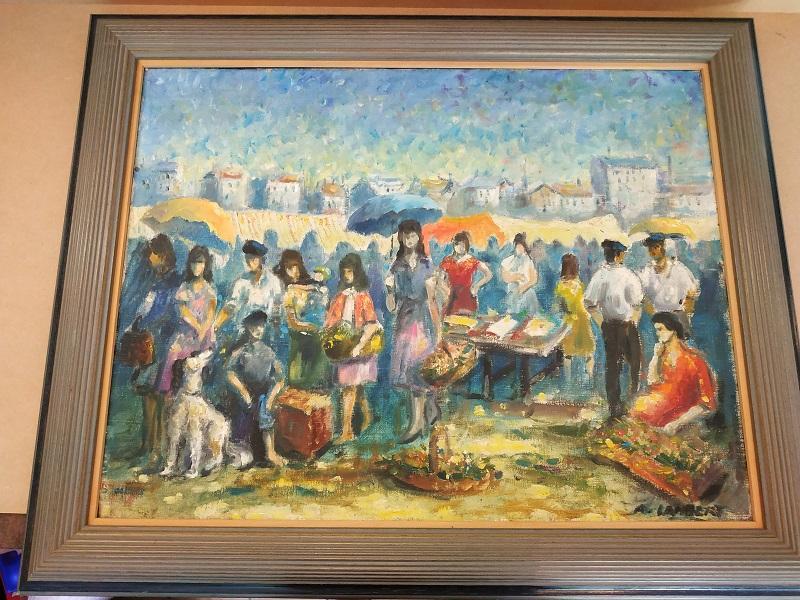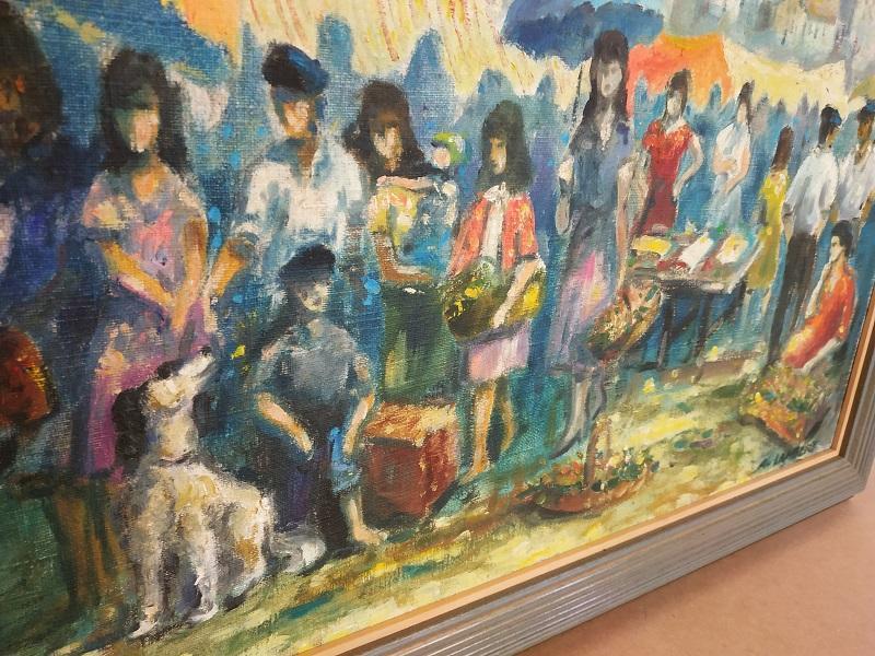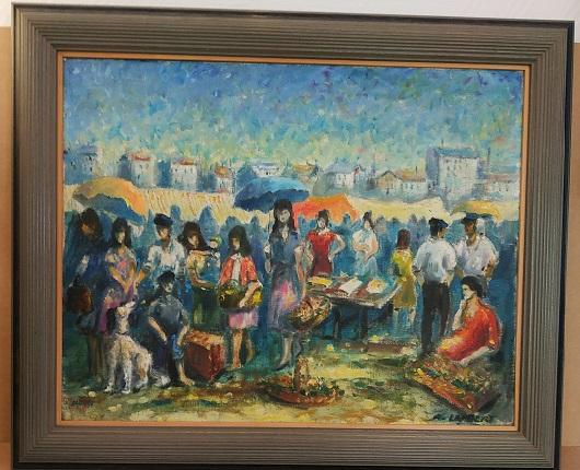 Huile sur toile « Le Marché aux fleurs » signée en bas à droite A.Lambert dans le goût de Serge Sauvage. En très bon état. Dimensions: L79 x H64 cm à vue 64x49cm, poids 3kg.